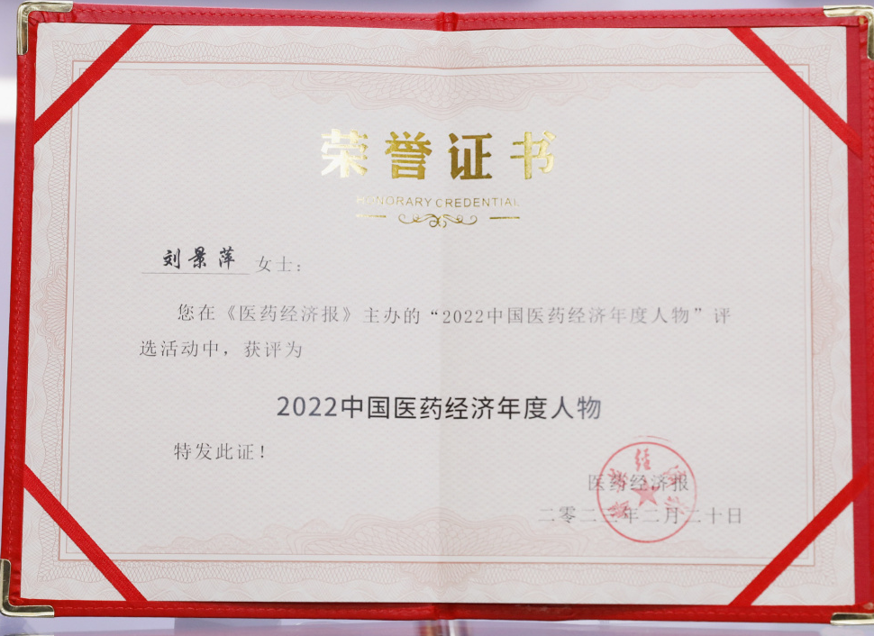 快盈VIII药业集团董事长刘景萍当选“2022中国医药经济年度人物”